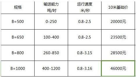 以下是皮帶輸送機(jī)一個參考價格,不代表實際的價格